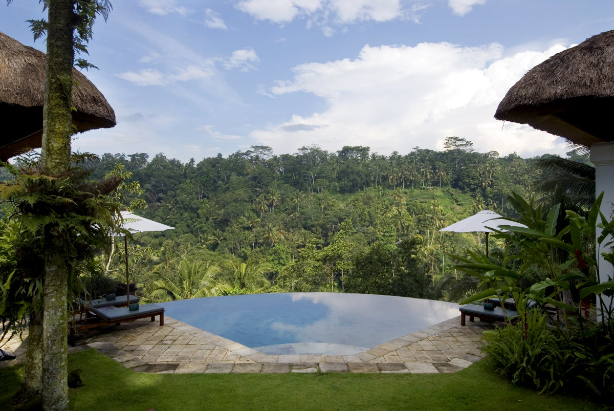 Villa Melati, located on the Sayan Ridge near Ubud, offers a cooler climate 300 meters above sea level. It's close to luxury hotels and an hour from Denpasar’s international airport.